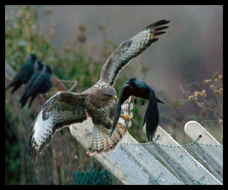 1. The left image is on the Nikon D2xs with a Nikon 300mm prime and 1.7TC (800 ISO, 1/320s F5.6). It contains a high level of noise in both of the birds especially the black feathers on the rook. .